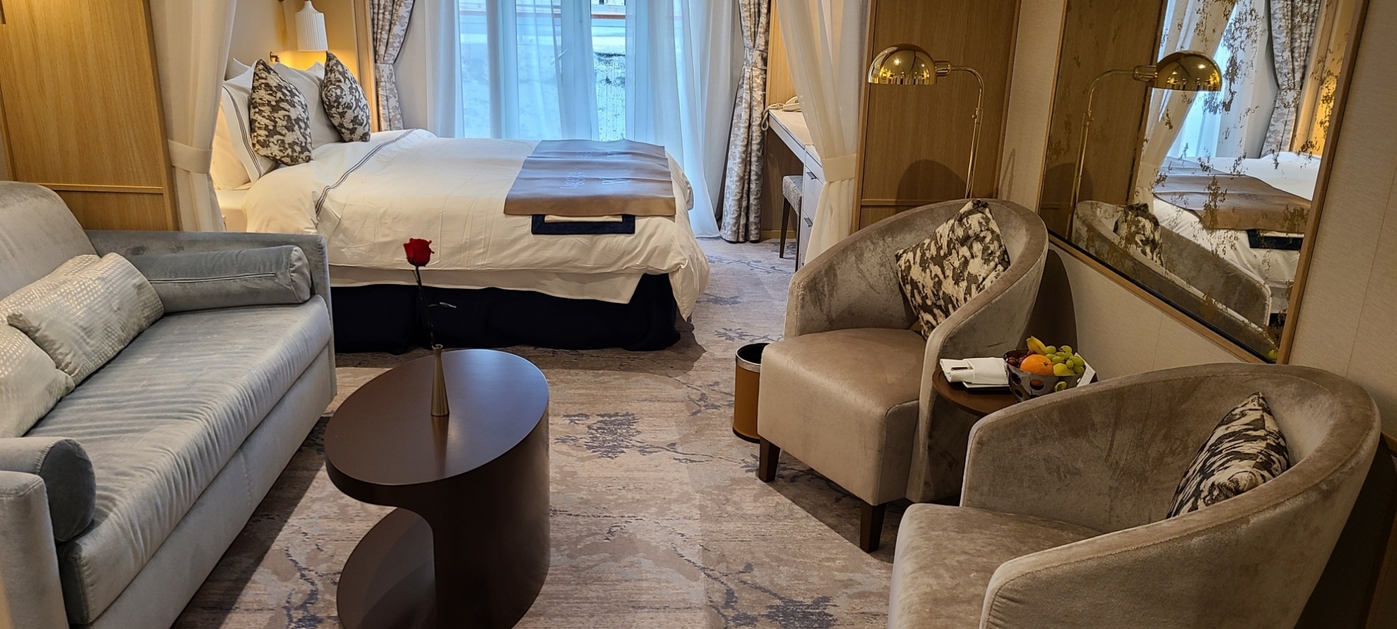 Just returned from our Windstar Pride cruise from Montreal to Boston. First time sailing on Windstar and we loved it! The Pride had been "stretched" and added 50 feet and can now accommodate about 300 passengers. We had 252 on board and 200 crew. The ship is beautiful and our cabin was quite roomy with a large bed, seating area, bathroom with two sinks and a walk-in closet! (See photos) We started off in Montreal with the required Covid test pre-boarding which went fairly quickly and smoothly. All crew members wore masks throughout the cruise and it was optional for passengers so some wore them and some not. Our itinerary was interrupted by Hurricane Fiona so we missed a couple of the scheduled stops and had an extra day in Quebec City which was so charming and full of history so we didn't mind that at all. Another day the Captain sailed us up the Saguiney River which was beautiful and a glorious, sunny day so he made the best of it to avoid rough seas. Other stops included Halifax, Lunenburg, Bar Harbor, Portland and Boston. Back to the ship, there were several dining options including the Veranda for breakfast and lunch. Another lunch venue is the Star Grill for buffet options and the Yacht Club for small sandwiches, sweets and a coffee bar. Dinner in the main dining room is Amphora, served from 7:00-9:00 PM, arrive when you wish. Two other options for dinner which require reservations are Cuadro 44 which offers a Spanish menu (try the grilled octopus - yum!) and Candles which offers delicious steaks, lamb and seafood. At Cuadro we sat at the Chef's Table where we didn't even have to order, the Chef just kept sending us items to try and everything was gourmet and delicious. There is a lounge where the lectures and some of the entertainment was held, a large bar called Compass Rose with a dance floor where the band and duo played each night and another outdoor bar at the Star Grill. There is a small gym, steam room, sauna and four heated beds which are available for anyone to use. Typical spa offerings include massage, nail and hair styling, etc. There is a small outdoor pool and whirlpool but it was pretty cold most of the time and I only saw the whirlpool in use a couple of times. One of the cool things Windstar does is a "Sail Away" from each port where they raise the flag and play Vangelis "Conquest of Paradise" which is magical - gave us chills with our glass of champagne in hand and watching the ceremony! Can't say enough good things about the crew from the waitstaff and bartenders to our housekeeper, all the officers which were very visible and interactive throughout the cruise and to every person we encountered they were professional, friendly and so accommodating to everyone. The fellow passengers we met were also wonderful, we met a few that we will keep in touch with for sure. Since this is a smaller ship than the megas which can carry 2500-3000 people and more, boarding and exiting the ship and debarkation were a breeze. We never stood in line for long (hardly ever) even for tenders to the ports when needed. We are sold on Windstar and will definitely sail with them again - no more mega-ships for us!
