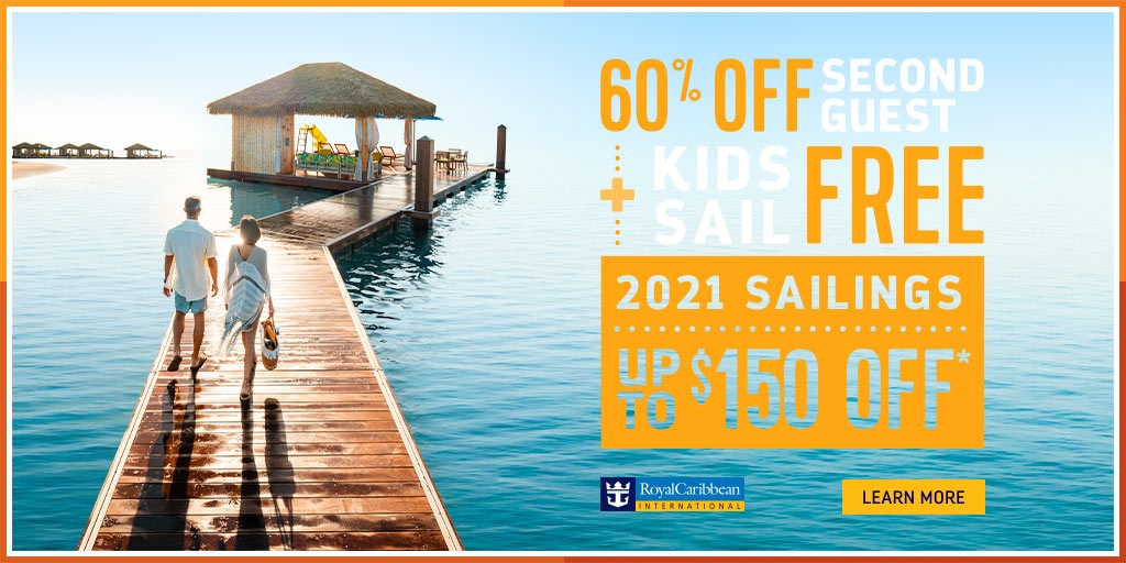 Jan115 Posted September 24, 2020 Report Share Posted September 24, 2020 (edited) Ready to revisit your wander list? Feel the sun on your skin as you unwind in an overwater cabana on a private island, Perfect Day at CocoCay. Get to know Mother Nature on trails that lead deep into tropical rainforests. Or take your adventure beneath the waves while scoping out colorful coral gardens. Right now, you'll save up to $150 on sailings in 2021. You'll also enjoy 60% off your second guest, plus bring the whole family because kids sail free*. If you need to change your plans, that's okay--our Cruise with Confidence policy allows you to cancel your booking up to 48 hours before you sail. and our Best Price Guarantee ensures you'll always get the best deal. Come Seek the Royal Caribbean. Contact Seven Sea Journeys at 401.203.7177 to learn more and book today! * For full terms and conditions please contact your travel advisor. BOGO60 must be booked between 09/1/20-9/30/20. BOGO60 applies to select sailings departing on or after 11/1/20. BOGO60 provides 60% off cruise fare of second guest booked in the same stateroom as first, full-fare paying guest. BOGO60 offer also provides 30% cruise fare savings for third guests and higher booked in the same stateroom as the first two qualifying guests. Kids Sail Free applies to new bookings made between 9/1/20 – 9/30/20. Kids Sail Free provides free cruise fare for 3rd guests and higher who are 12 years old or younger as of cruise departure date, booked in the same stateroom as the fi rst two qualifying guests in a triple or quad-occupancy stateroom. Kids Sail Free applies to select 4-night or longer Alaska, Bahamas, Bermuda, Canada, Caribbean, CaribNE, Coastal, Europe, Hawaii, Repositioning and all 2020 Serenade of the Seas sailings departing between 11/1/20 – 12/17/20 and 1/8/21 – 5/17/21 and 9/1 – 12/17/21, and QN in Alaska 5/10 – 9/21/21. Offer excludes 2020 Thanksgiving sailings (Sailings between 11/21/20 – 11/28/20), 2021 President’s Day sailings (Sailings between 2/12/21 – 2/15/21), and 2021 Spring Break and Easter sailings (Sailings between 3/13/21 – 4/4/21), and 2021 Thanksgiving Sailings (Sailings between 11/ 19 – 11/26/21. Taxes, fees, and port expenses are additional and apply to all guests. 2021 Kicker Sale applies to new bookings made between 9/1/20 – 9/30/20. 2021 Kicker Sale offers instant savings of up to $150 USD per stateroom on select sailings departing between 1/1/21 – 12/31/21. Savings amount determined by category booked and sailing length: On sailings 5 nights or less, $25 savings for Interior and Ocean View, $50 for Balconies and $75 for Suites; on sailings 6 nights or longer, $50 savings for Interior and Ocean View, $75 for Balconies and $150 for Suites. Instant savings applied as instant rebate to the price of cruise fare at checkout. Instant savings do not apply to China departures. The “Cruise with Confidence” program allows individual guests and guests in non-contracted groups who booked a cruise on or before September 30, 2020, for cruises sailing between June 12, 2020 and April 30, 2022, to opt-in for RCI’s “best price guarantee” on their current sailing, or cancel their cruise up to 48 hours prior to the vacation start date and have the option to either (i) move their booking to an eligible alternate sailing and receive our “best price guarantee” for the re-booked sailing (“Lift and Shift”) or (ii) receive a Future Cruise Credit equal to the amount of the cruise fare the guest paid for their cruise. Visit www.royalcaribbean.com/cruisewithconfidence for complete details. NRDB cancelled prior to final payment due date will receive a future cruise credit in the amount of the deposit minus a 100USD/CAD per person service fee (“FCC”). FCC is non-transferable and expires 12-months from issue date. 100USD/CAD per person service fee applies to changes to NRDB ship or sail date. Deposits made toward Guarantees and Grand Suites and higher categories are non-refundable and are subject to NRD Booking Terms. Offer applies to new, individual and named group bookings confirmed at prevailing rates. Offer open to residents of US, Canada, Puerto Rico and select countries in the Caribbean. Prices and offers are subject to availability and change without notice, capacity controlled, and may be withdrawn at any time. Refer to www.RoyalCaribbean.com for complete terms and conditions. Royal Caribbean International reserves the right to correct any errors, inaccuracies or omissions and to change or update fares, fees and surcharges at any time without prior notice. ©2020 Royal Caribbean Cruises Ltd. Ships’ registry: Bahamas. 20074304 • 8/26/2020 FL Seller of Travel Ref. No. ST15578 - CA Seller of Travel No. 2090937-50 Washington UBID No. 603189022 - Iowa Registered Agency No. 1202 Edited September 24, 2020 by Jan115 Quote Link to comment Share on other sites More sharing options...